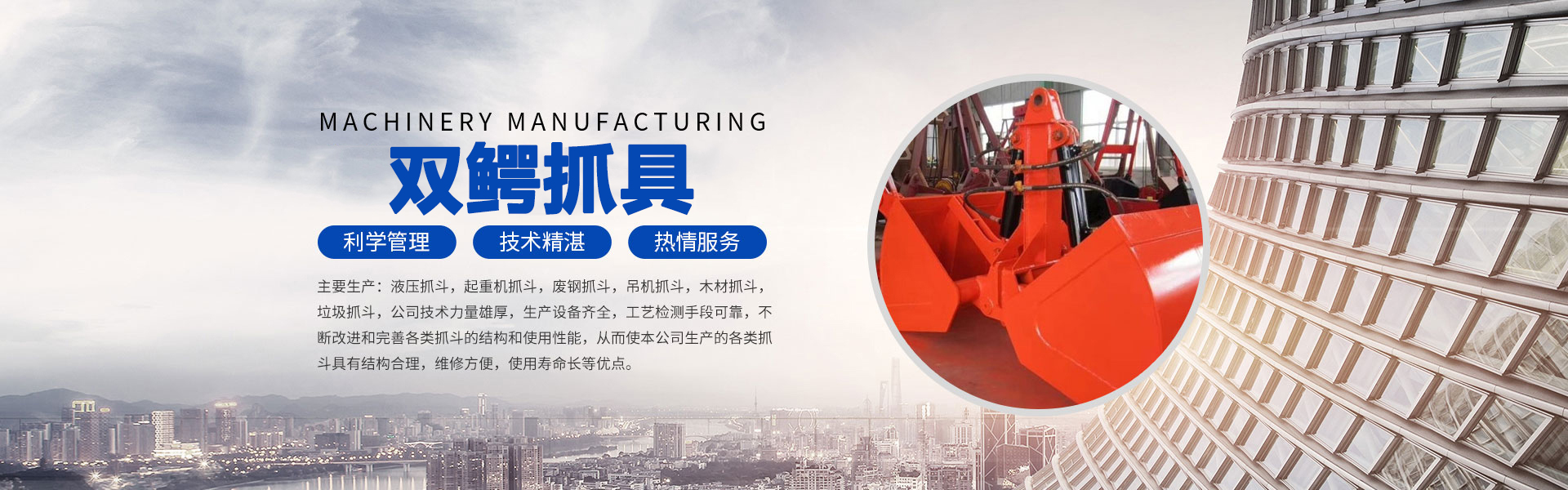 三十多年來,我廠為有色、冶金、建材、化工、 交通、環保等部門提供的0.063-20立方米(mǐ)、0.5-63噸(dūn) 四繩、雙繩、單繩、電動、液壓、木材、雙顎板、多 顎板、剪式、耙集式、衝抓式(shì)係列“雙鱷”牌抓鬥以 及各種夾具、吊具,產品以其結構(gòu)新、性能好,抓取 比高,使用壽(shòu)命長等特點,深受到廣大用戶的歡迎。